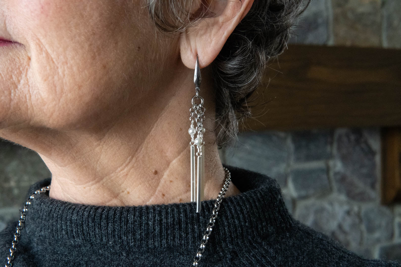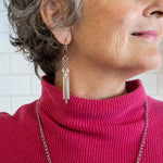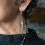 The Blake Earrings bring a beautiful sense of movement, with slender drops and subtle shimmer that catch the light as you move. They elongate the neckline and add a refined presence that feels both effortless and considered. A striking finishing touch that can stand confidently on its own.
