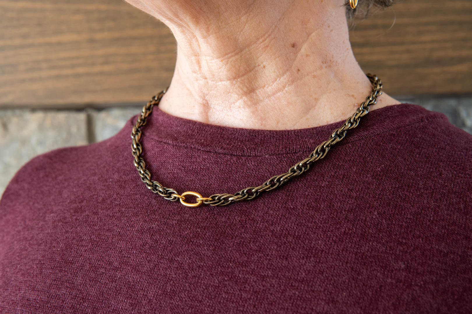 Reminiscent of Old World opulence, the Rory harmonizes gold and bronze in a spectacular piece that will become a staple in your Carolily Collection. Captivating solo, Rory can also be layered with other necklaces for an entirely new look.